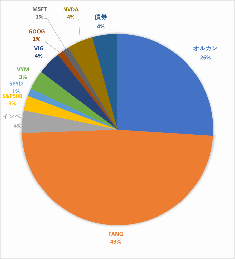 FANG+で半分、オルカンが1/4、その他が1/4という構成になっています。